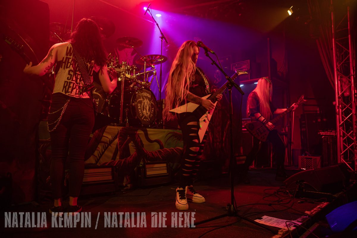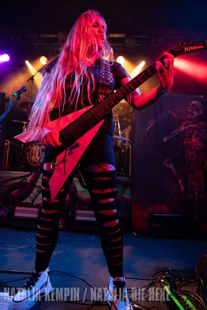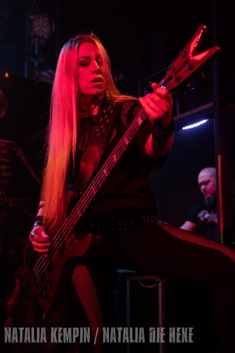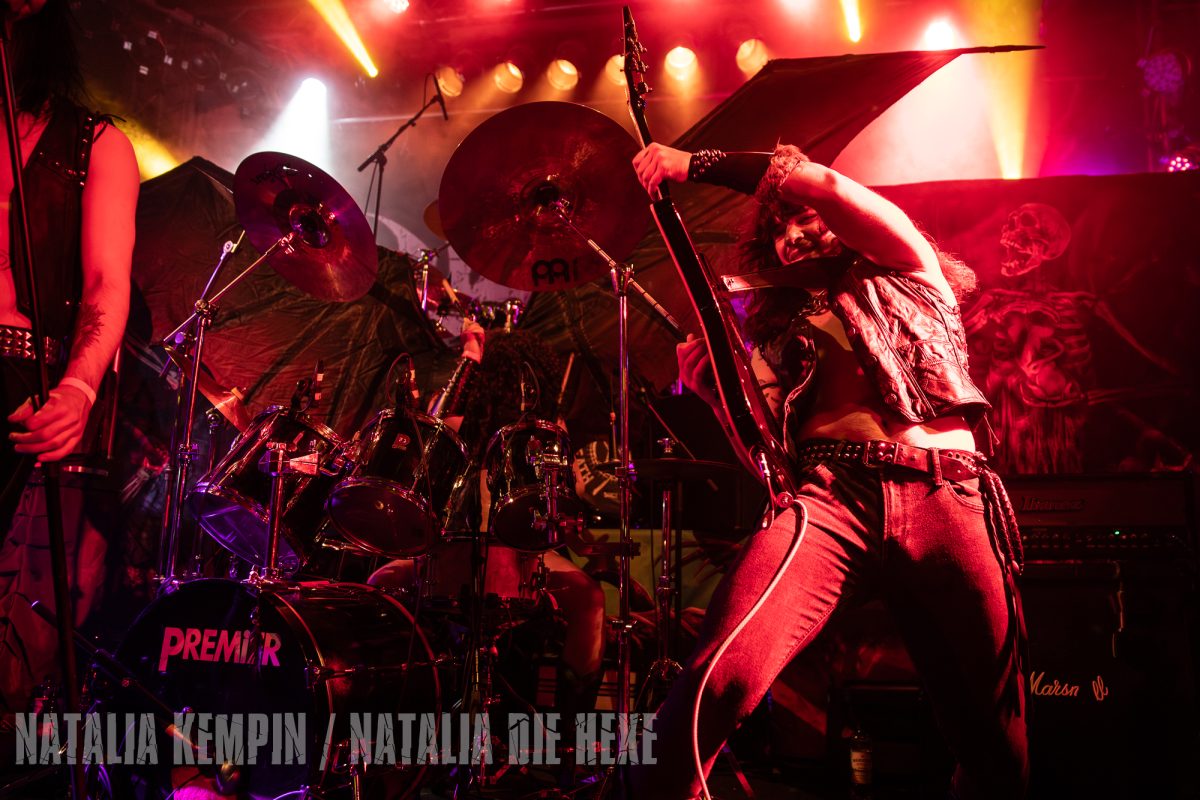 Luego llegó el turno de las mujeres de la noche: NERVOSA, que desde Brasil han conseguido arraigo europeo con una ferocidad que no admite dudas. A pesar de los cambios constantes en su alineación, esta versión de la banda se presentó sólida, con Prika Amaral al frente, comandando la energía del show.