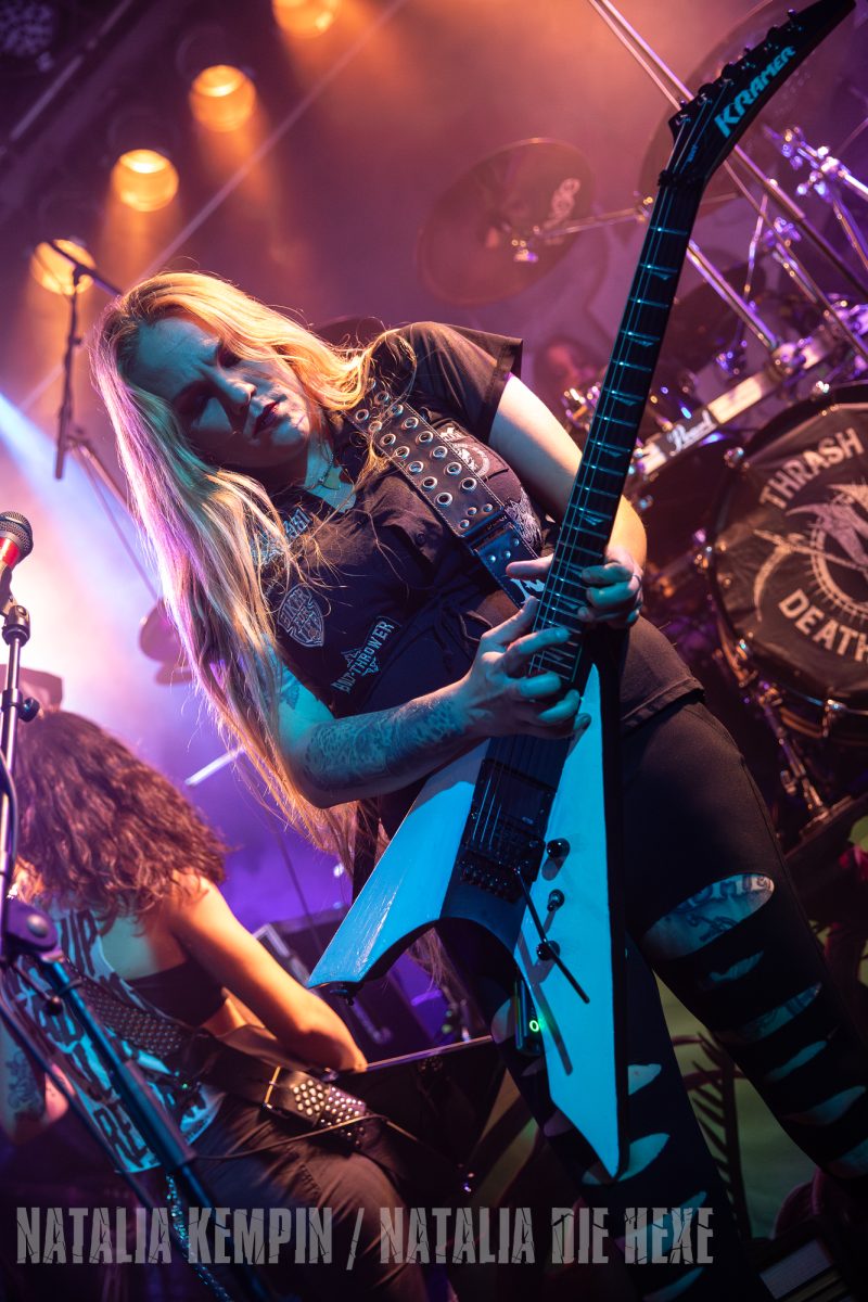 El cartel, por sí solo, prometía intensidad: una mezcla de viejas glorias del thrash alemán y la potencia femenina brasileña, aderezado con una dosis de raw blackened thrash local. Y aunque no vimos el comienzo con CAMPA, lo que presenciamos fue más que suficiente para sentir la sangre correrse.
